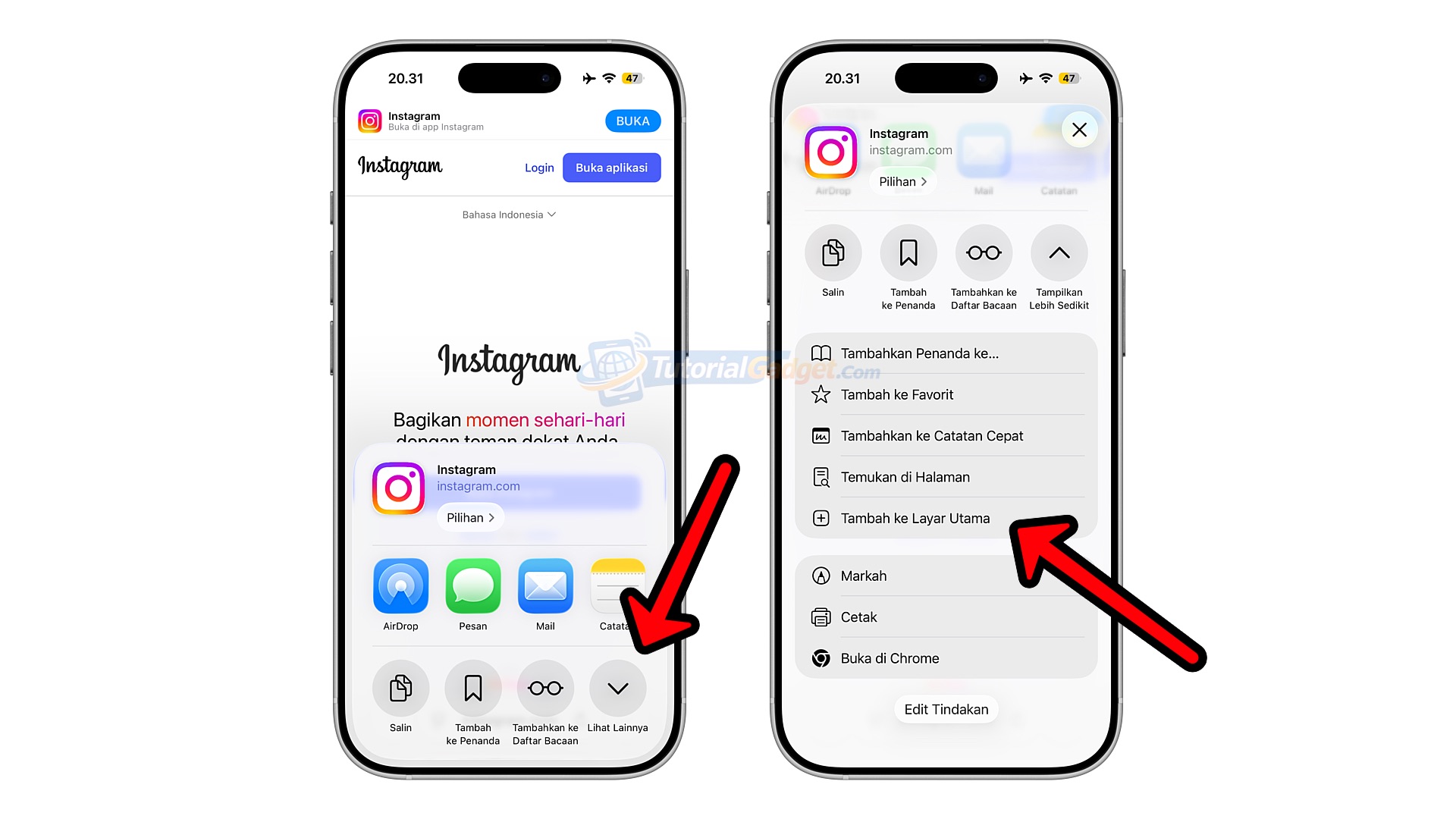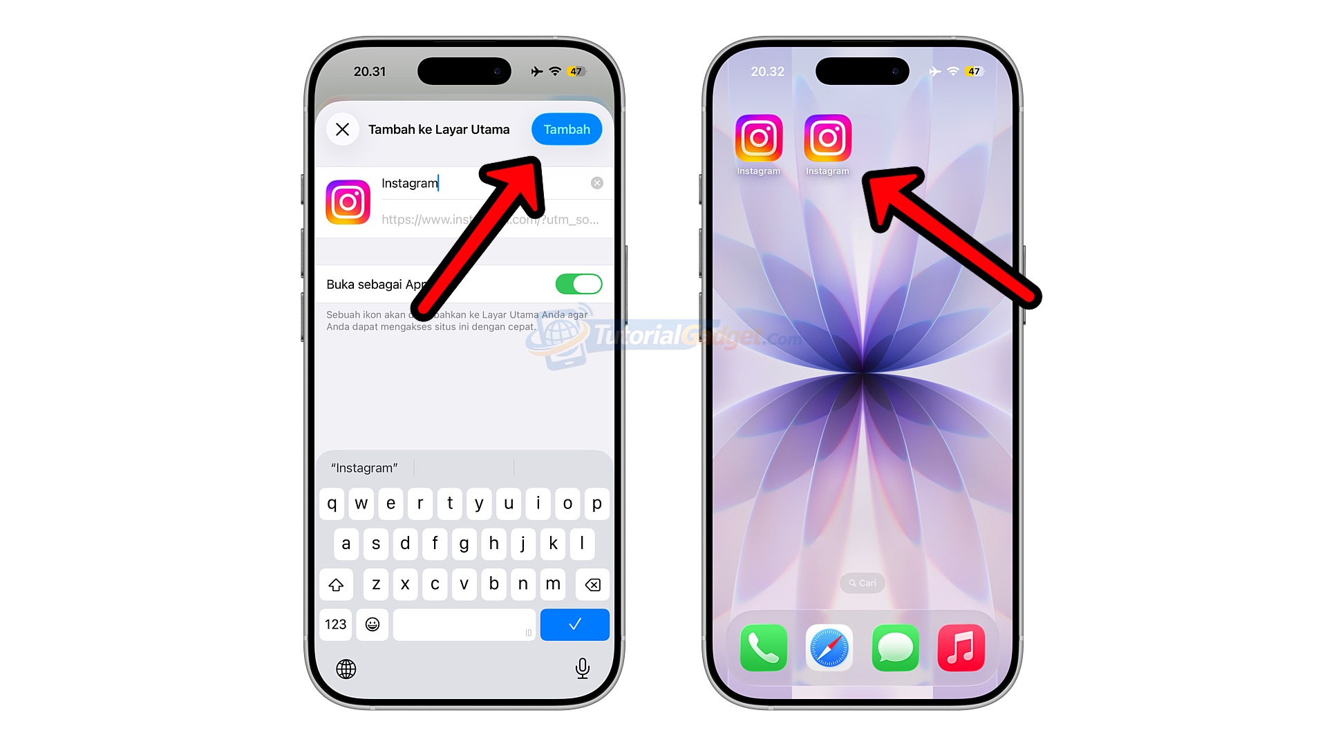 3. Terakhir, silakan tap menu Tambah, nantinya situs Instagram ini akan diubah jadi bentuk aplikasi Web terpisah dari aplikasi utamanya.