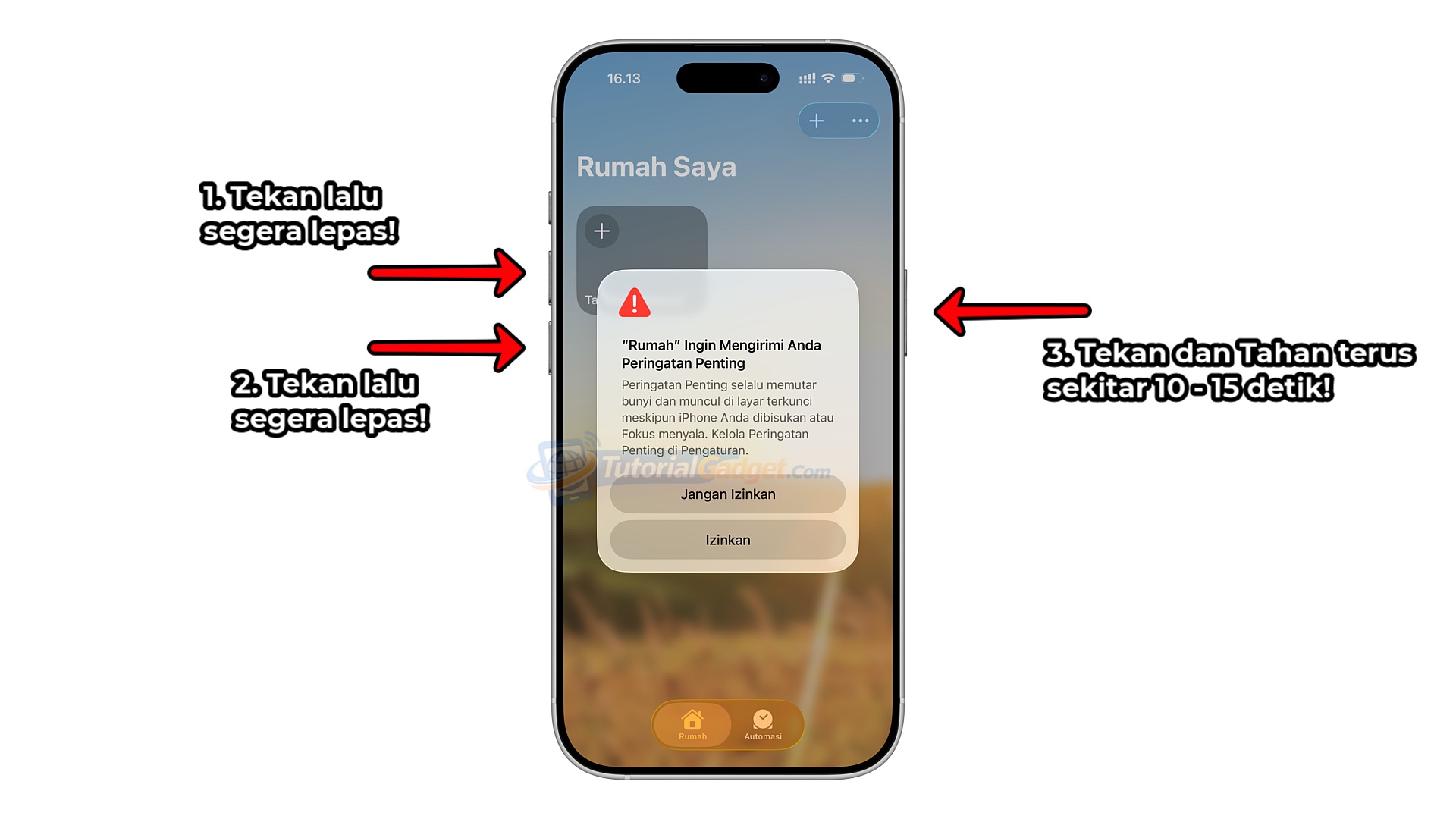 2. Tekan tombol Volume Bawah lalu lepas