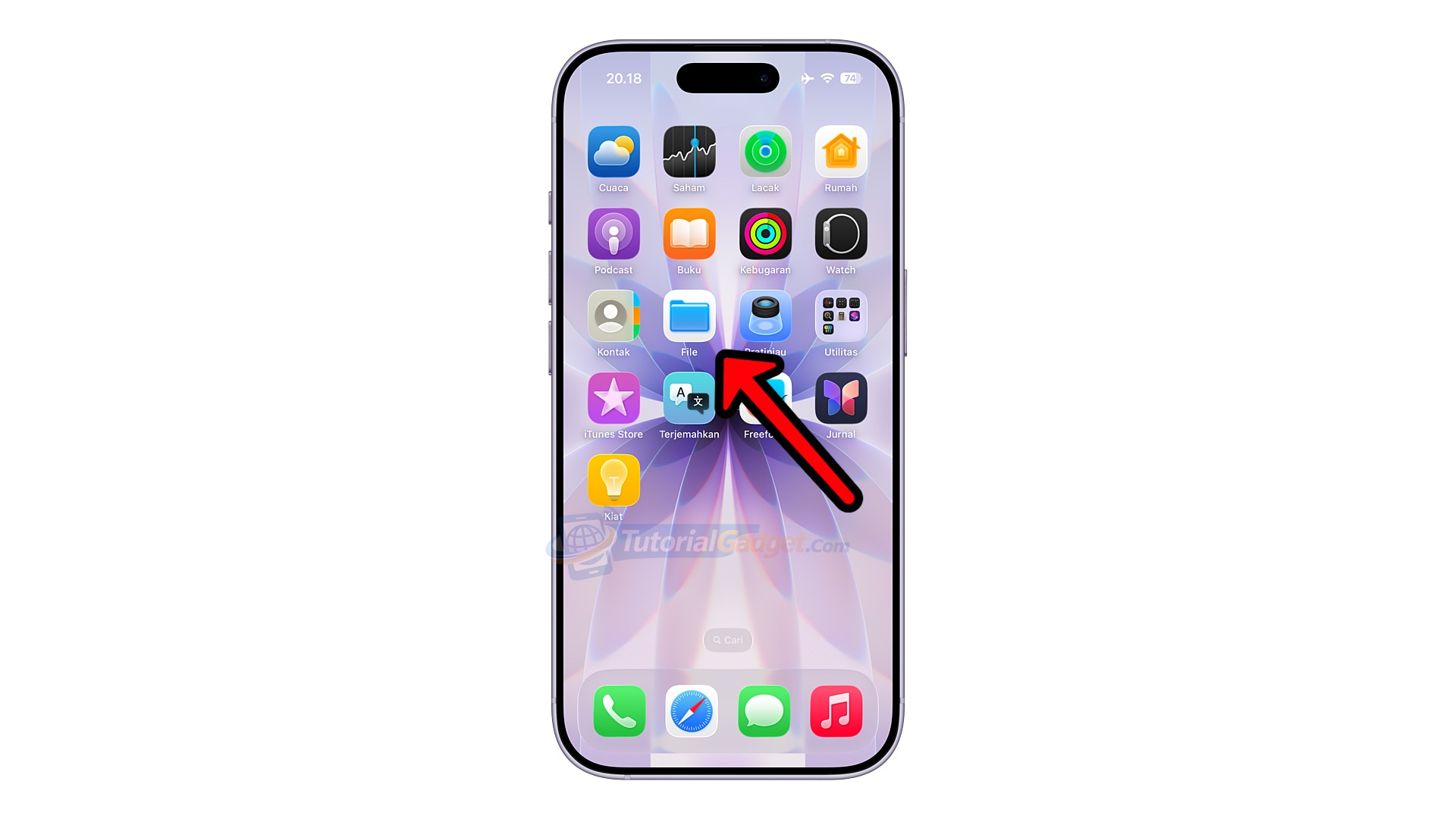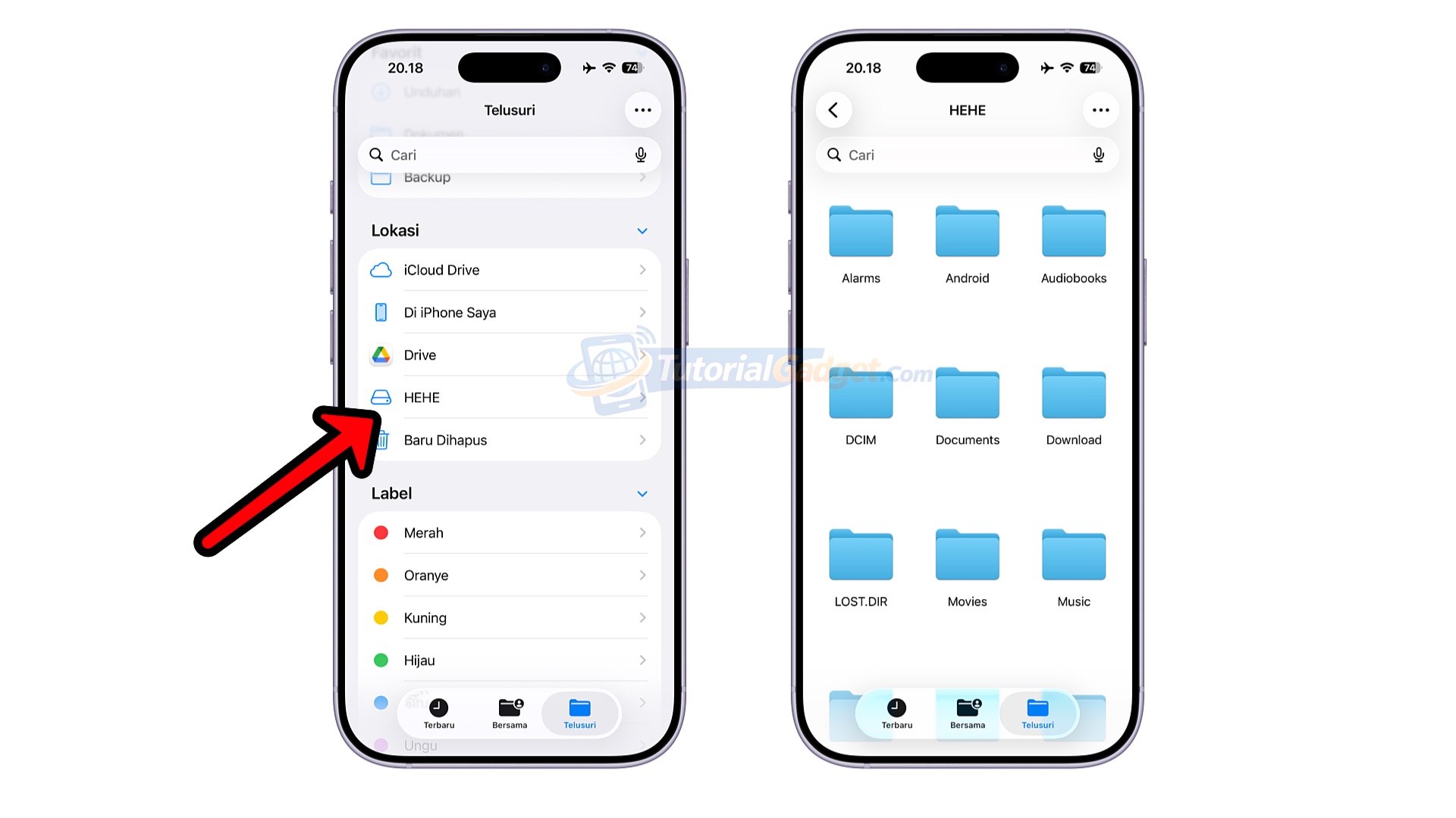 Di aplikasi File tersebut, tepatnya di menu telusuri silakan kembali ke direktori utama (tap kembali di ujung kiri atas atau tap dua kali pada icon menu telusuri).
