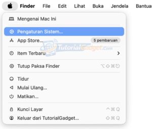 Pertama, silakan buka Pengaturan Sistem dengan cara klik Icon Apple yang ada di ujung kiri atas layar, setelah itu pilih menu Pengaturan Sistem.